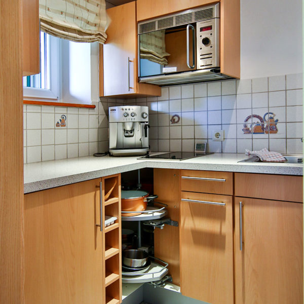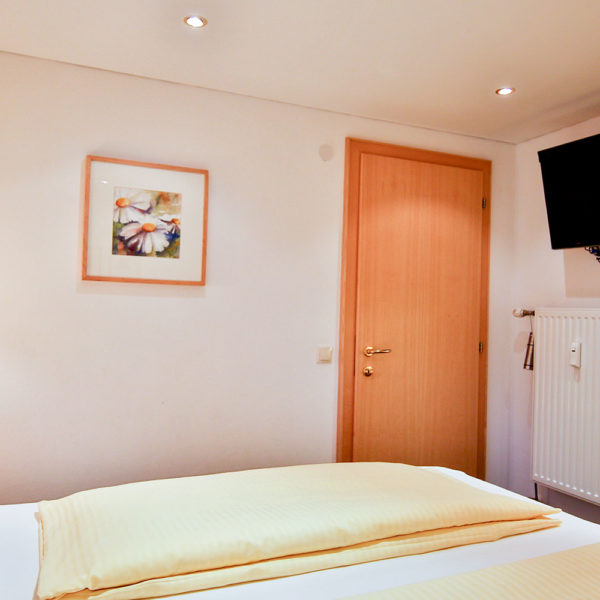 Wohn-/Schlafbereich mit zwei Betten, Flachbildfernseher, Küche mit vollautomatischer Kaffeemaschine, Duschbad mit Toilette, Schlafzimmer mit 2 Betten zusammenrückbar, Flachbildfernseher, Balkon, Hunde erlaubt.